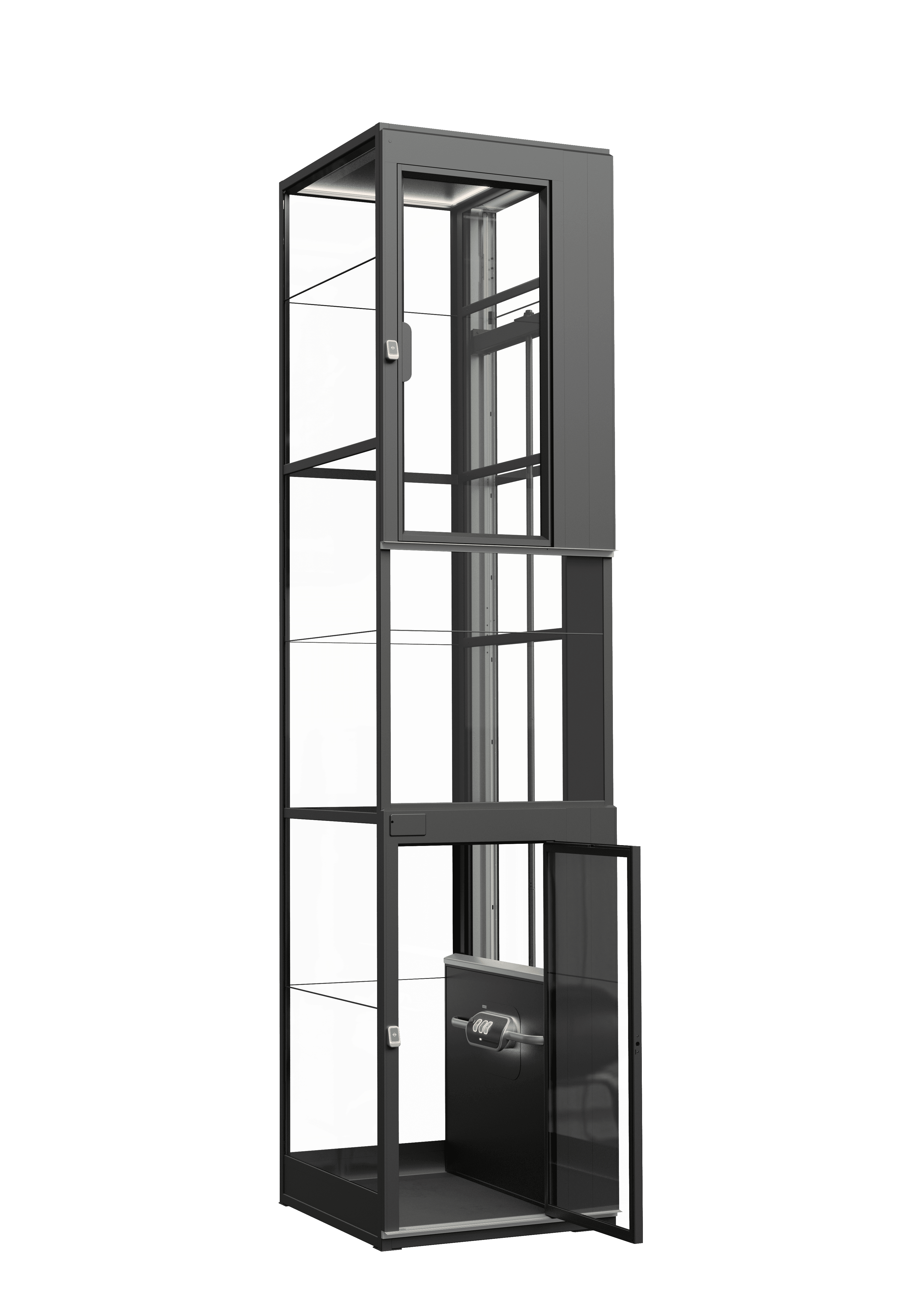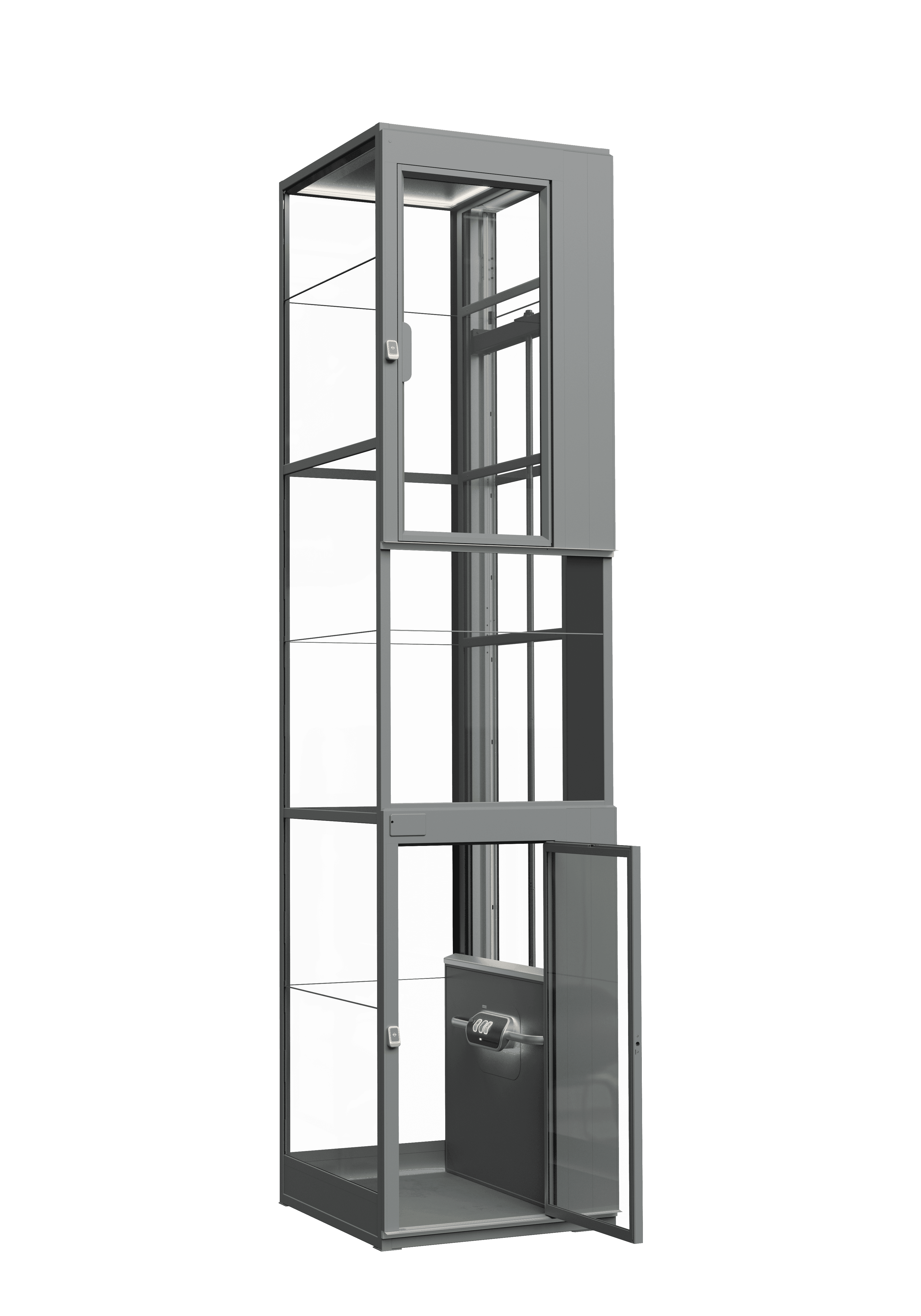 표준 도어를 사용하면 리프트의 상단 높이가 2350mm에 불과합니다. 낮거나 경사진 천장의 경우 맞춤형 도어 솔루션도 제공합니다.